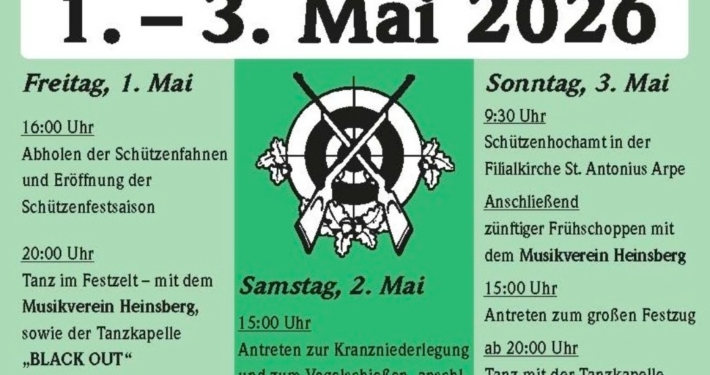 Wir freuen uns über Deinen Besuch auf der Website des Schützenverein Kückelheim e.V. bei Arpe. Hier erfährst Du Näheres über unseren Verein, seine Aktivitäten, aktuelle Neuigkeiten und anstehende Termine. Traditionell eröffnet der Schützenverein Kückelheim im Arpetal die alljährliche Schützenfestsaison im Schmallenberger Sauerland. Unser Schützenfest findet jeweils Ende April oder Anfang Mai statt.